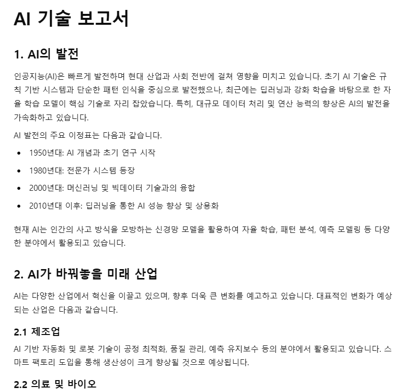 ✅ 일관된 품질 유지: 문서 작성, 보고서 초안 작성 시 유용